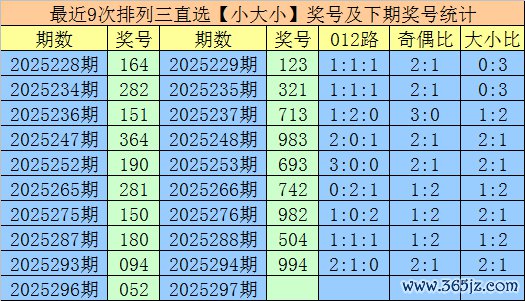 1.罗列三第2025296期奖号开出052,大小直选分散为:小大小,在历史开奖中直选【小大小】分散已开出938期,在前9次直选【小大小】分散中,出现奖号为:164-282-151-364-190-281-150-180-094,组三开出2期,组六开出7期。